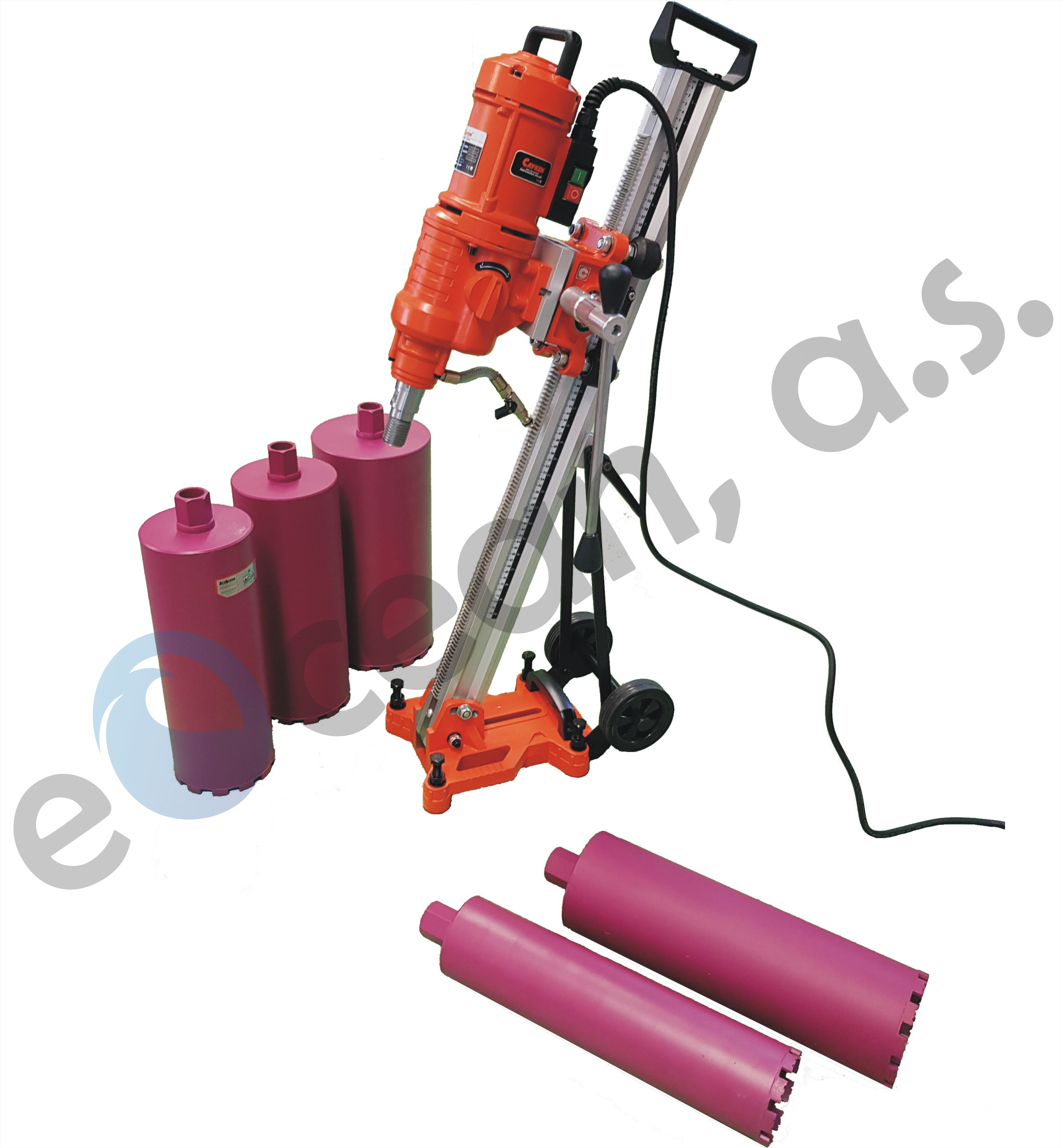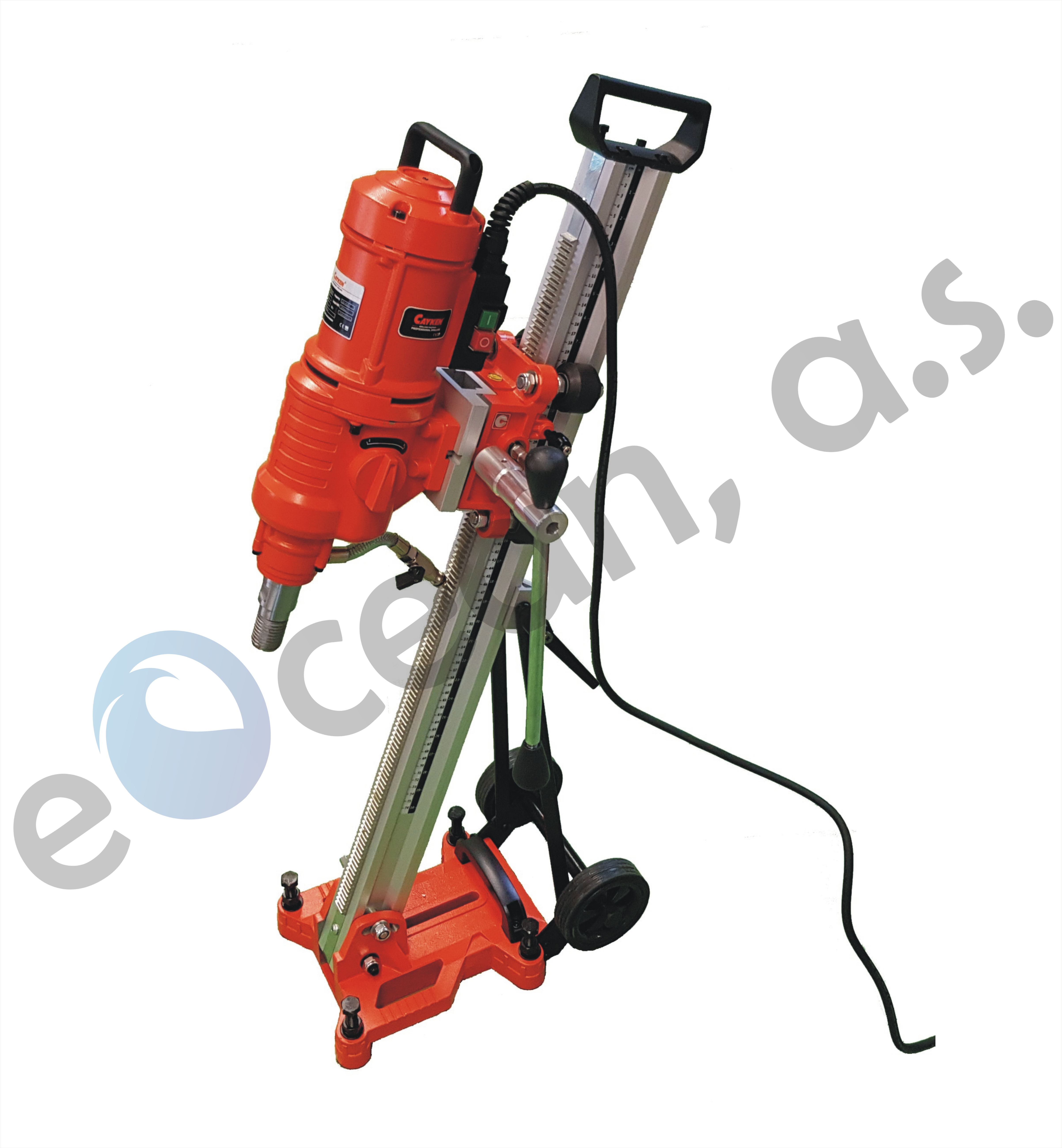 Jádrová vrtačka Značka Cayken, model SCY-2550BCM je při použití jádrových diamantových vrtáků vynikajícím nástrojem pro jádrové vrtání do tvrdých stavebních materiálů. Snadno dokáže vrtat i široké otvory až do průměru 255 mm. Díky integrovanému systému vodního chlazení pracuje přístroj s optimálními pracovními parametry a zaručuje tak delší životnost vrtáků. Proto tato jádrová vrtačka nachází ideální uplatnění na stavbách.