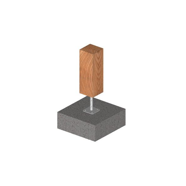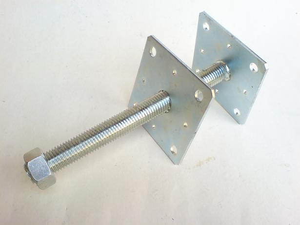 Výškově stavitelná patka sloupku. Ploška pro přišroubování do podlahy 110 x 110 mm.