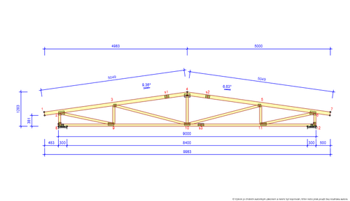 * Vazník je dimenzován maximálně na sněhovou oblast II a větrovou oblast III, pro vyšší oblasti je nutno staticky přepočítat rozteč vazníků.